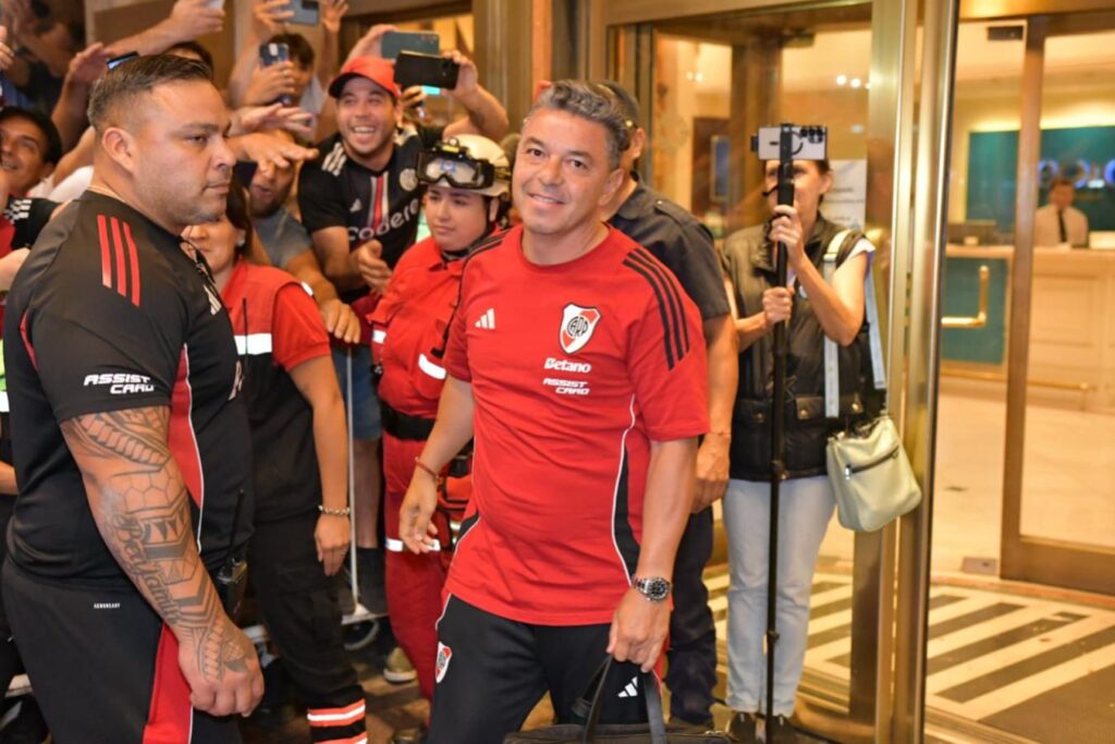 Marcelo Gallardo fue uno de los más aclamados por la gente y el técnico se acercó con mucha amabilidad a darle la mano a algunos hinchas.
