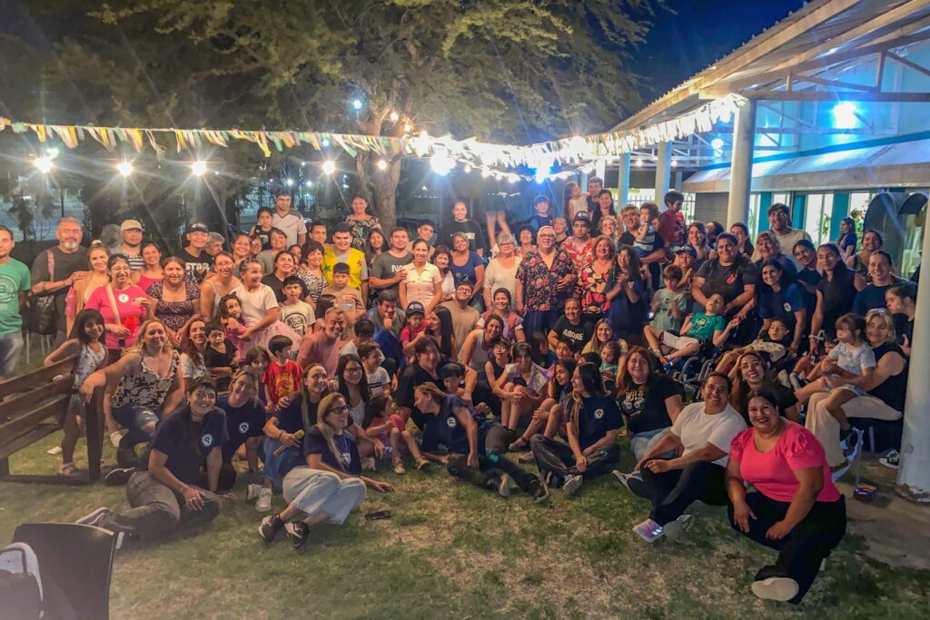 Las familias llegaron preparadas para disfrutar la jornada: llevaron reposeras, mates y alimentos navideños. Más tarde se compartieron empanadas, generando un ambiente cálido y de convivencia. Antes del fogón, los jóvenes realizaron una bandera comunitaria, cada uno imprimió sobre la tela la huella de su mano pintada, acompañada de su nombre. La bandera quedó como símbolo de identidad, pertenencia y del día compartido.