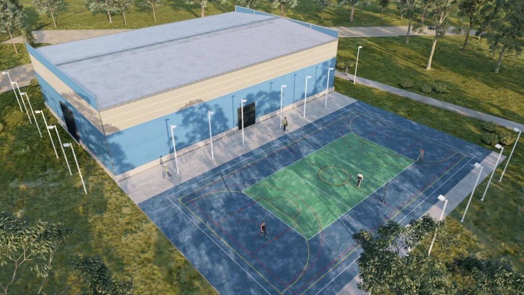 Las instalaciones tienen 25 metros por 46, lo que representa alrededor de 1.200 metros cuadrados cubiertos. Tendrá tribunas, tableros y cerramiento perimetral con muros termopaneles metálicos, un sistema que facilitará la climatización en el lugar. Además, incluirá iluminación para la práctica de disciplinas como básquet, futsal, vóley, handball y patín.