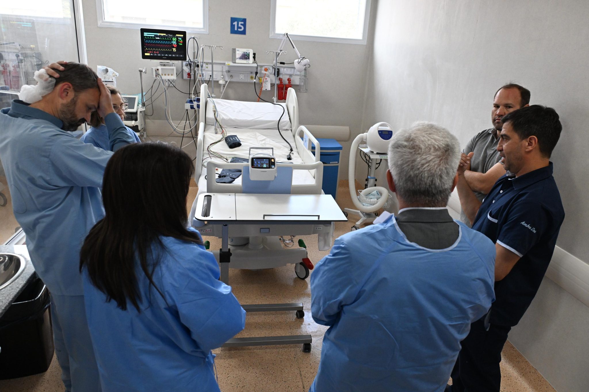 Durante el recorrido, los profesionales le mostraron al Gobernador los equipos incorporados y aseguraron que más de la mitad son importados. Entre ellos, se destacan máquinas de anestesia Penlon Prima 465, un arco en C Philips Zenition 70, monitores multiparamétricos Philips MX750 y MX550, torres de laparoscopía Gimmi 4K UHD, fibrobroncoscopios Ambu aView 2 Advance, camas eléctricas Linet Eleganza 4, equipos de alto flujo F&P Airvo 2, y más de 40 cajas de instrumental Aesculap para diversas especialidades quirúrgicas.