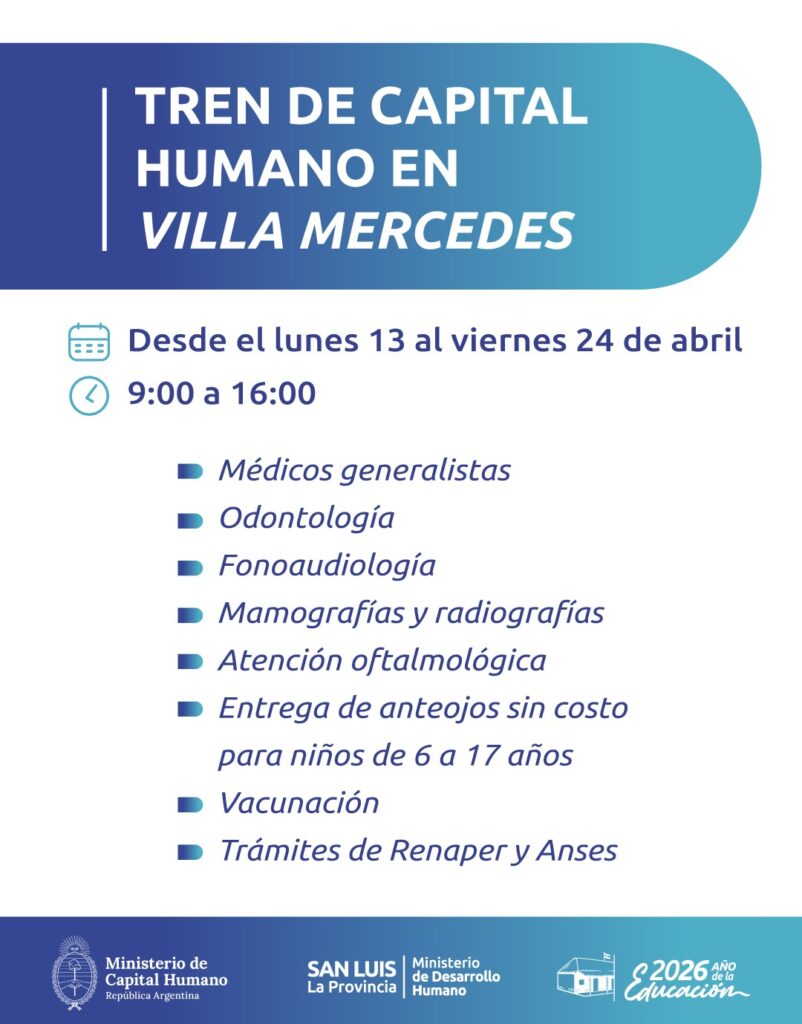 El tren de Capital Humano comienza este lunes su atención en Villa Mercedes