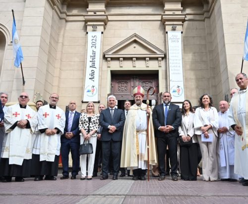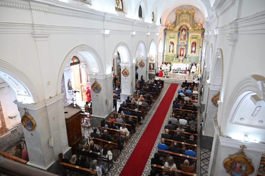 El gobernador Claudio Poggi asistió a la misa que se desarrolló en la Iglesia Nuestra Señora de la Merced, acompañado por su esposa, Sandra Correa, junto con el intendente Maximiliano Frontera. El obispo, Monseñor Barba, invitó a la comunidad a “construir una sociedad de manos tendidas y de respeto”.