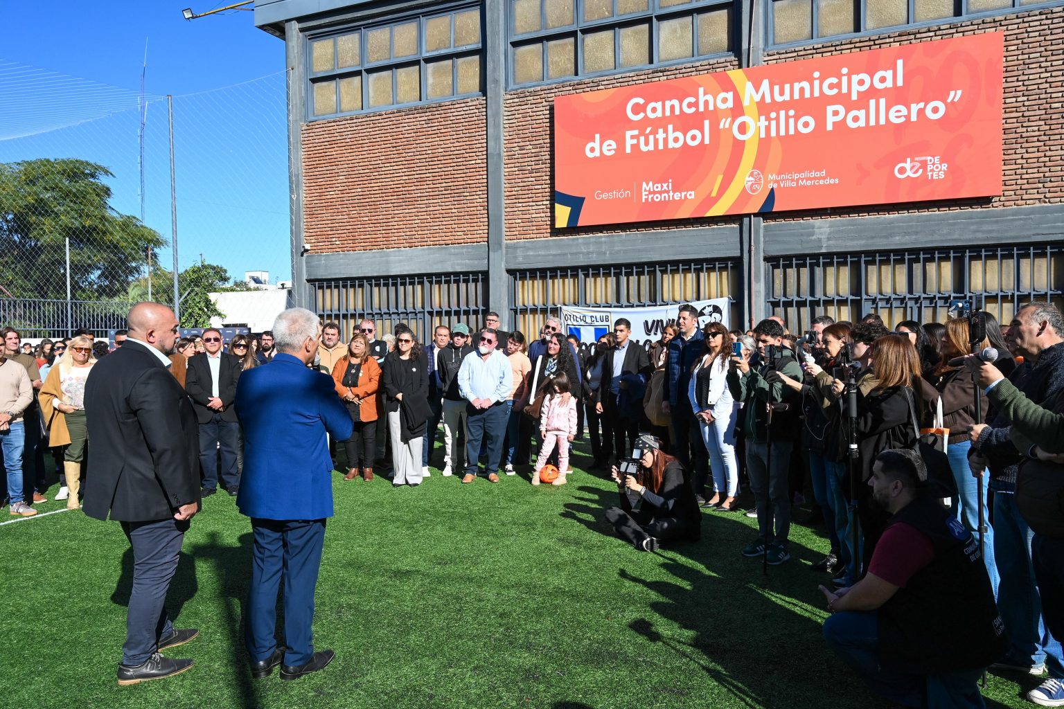Este jueves, durante su visita a Villa Mercedes, el gobernador Claudio Poggi acompañó al intendente Maximiliano Frontera a inaugurar la cancha municipal de fútbol que está ubicada el Palacio de los Deportes ‘José María Gatica’ y que llevará el nombre de ‘Otilio Pallero’, a quien todos conocían afectuosamente como ‘Atilio’.