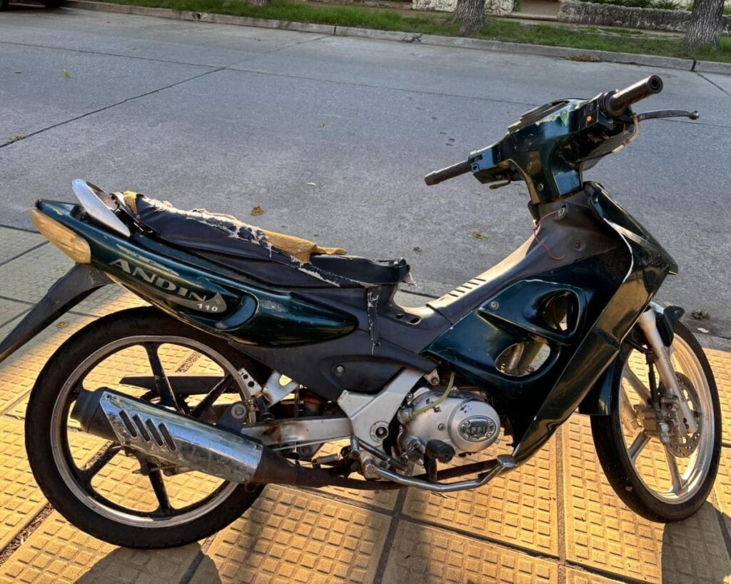Al verificar las características de la moto, los uniformados constataron que se trataba de una motocicleta marca Appia, modelo Andina 110 cc, de color verde, sin dominio visible y con daños, la cual coincidía con un rodado denunciado como sustraído durante la mañana en otro sector de la ciudad.