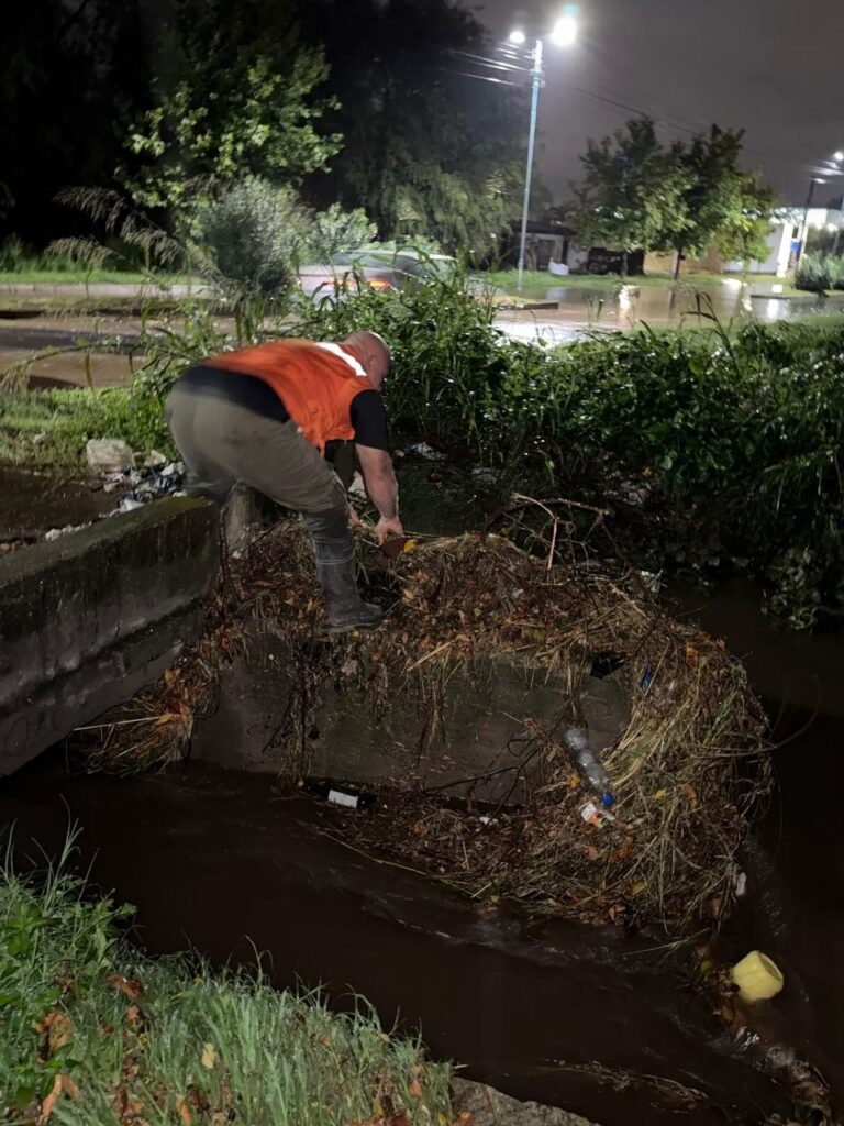 Luego de las precipitaciones registradas en las últimas horas, equipos de guardia del municipio trabajan intensamente y de manera continúan con tareas de limpieza y mantenimiento en desagües, sumideros, canales y bocas de tormenta en distintos puntos de la ciudad.