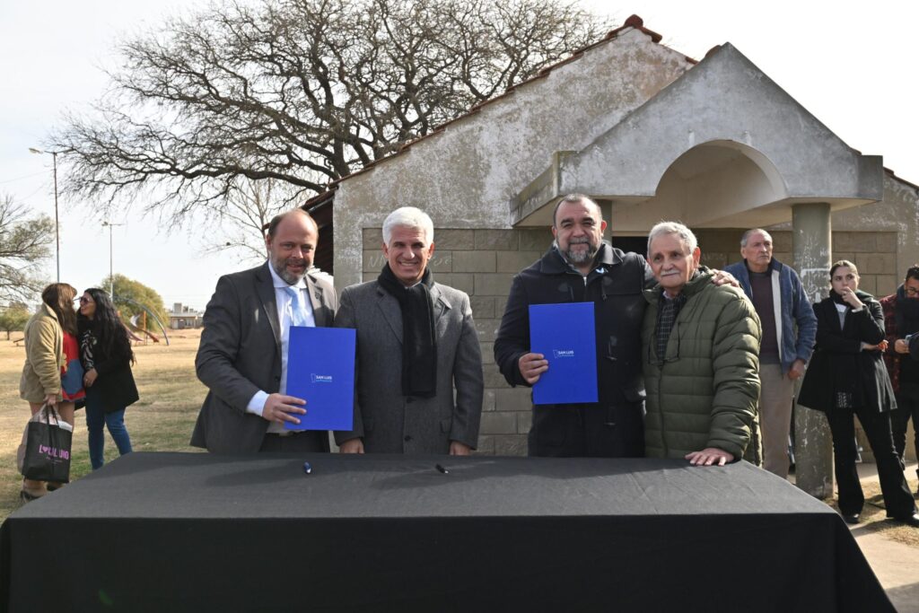 El Gobierno de San Luis y la Municipalidad de Villa Mercedes firmaron un contrato de comodato para restaurar la sede de la comisión vecinal del barrio Jardín del Sur. Durante el acto, el gobernador Claudio Poggi saludó a los locutores de Villa Mercedes por conmemorarse su día.