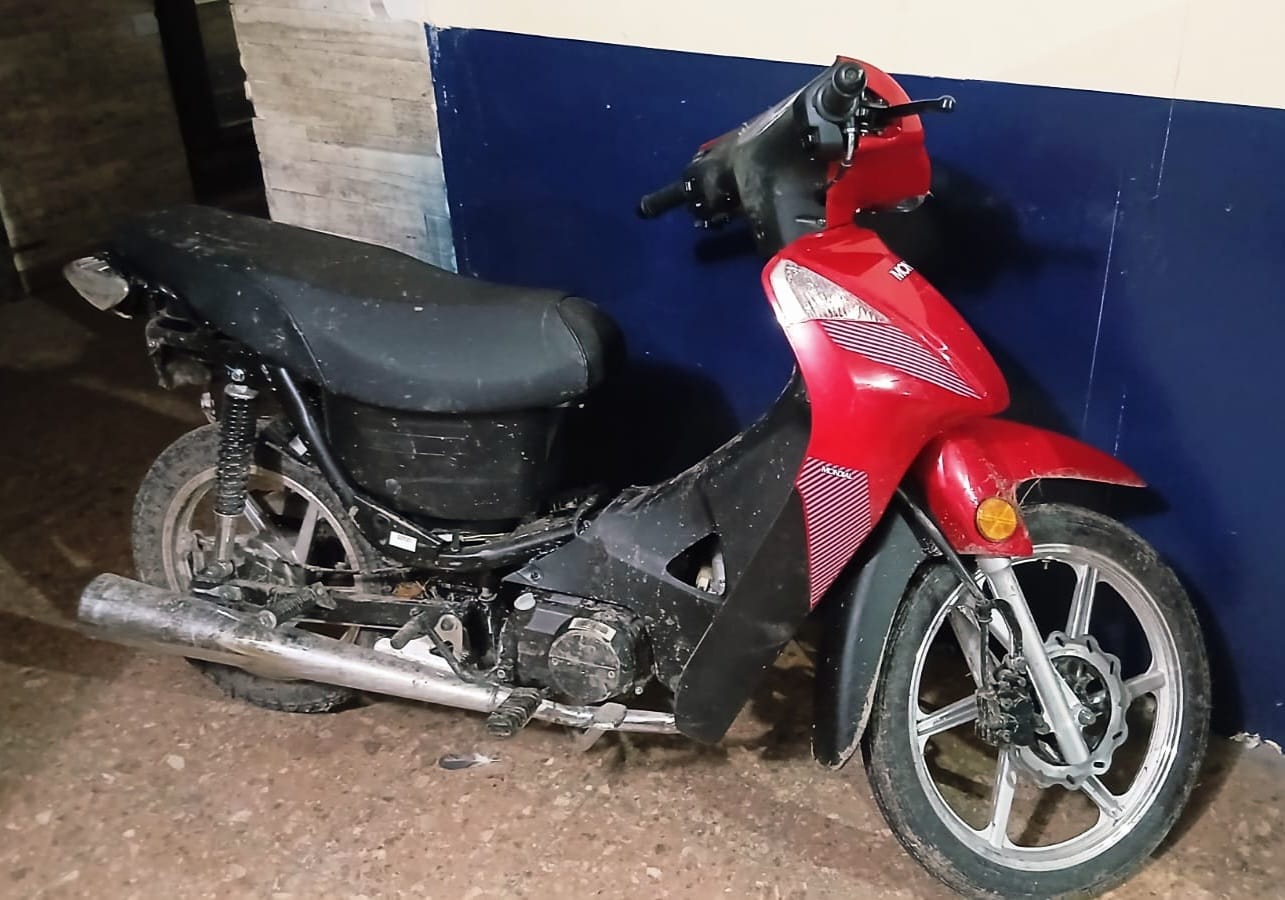 En el lugar, se procedió al secuestro de una motocicleta marca Mondial, 110 cc, de color rojo, la cual presentaba faltantes de espejos retrovisores, cachas laterales traseras y chapa patente.