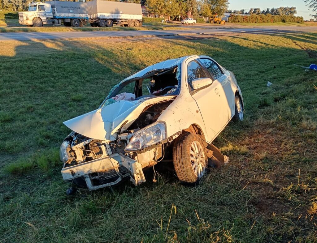 De acuerdo a las averiguaciones, un hombre de 76 años de edad conducía de sur a norte un automóvil Toyota Etios en compañía de dos mujeres y un hombre (todos mayores de edad), y en ese sector el vehículo sufrió la rotura de una cubierta, lo que provocó que el conductor perdiera el control del auto, el cual mordió la banquina, cruzó de carril, impactó contra un cartel de señalización y volcó.