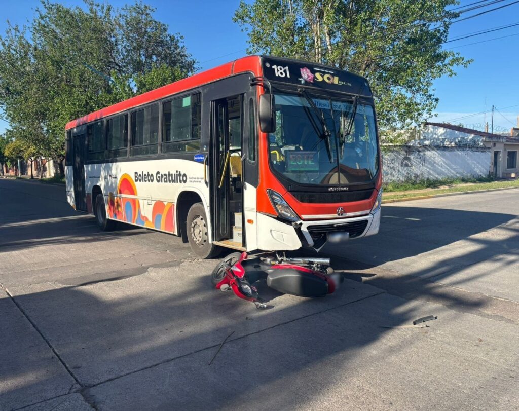 En la intersección de Balcarce y Teodoro Fels colisionaron un colectivo Mercedes Benz de transporte urbano, conducido por un hombre de 39 años, y una motocicleta Keller 110 centímetros cúbicos en la que viajaba una adolescente de 16.